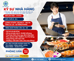 Tuyển 2 nữ Kỹ Sư Nhà Hàng, làm việc trong môi trường chuyên nghiệp, yêu thích ẩm thực, nấu ăn thì đây là một lợi thế dành cho các bạn. Đừng bỏ lỡ nhé!