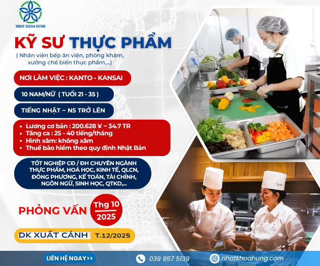 TUYỂN 10 NAM/NỮ KỸ SƯ THỰC PHẨM LƯƠNG HẤP DẪN, CHẾ ĐỘ TỐT