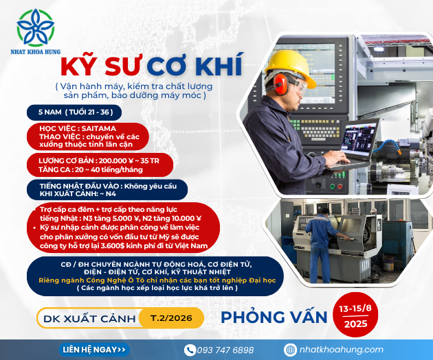 [ Saitama ] TUYỂN 5 KỸ SƯ CƠ KHÍ NHIỀU CHẾ ĐỘ PHÚC LỢI TỐT