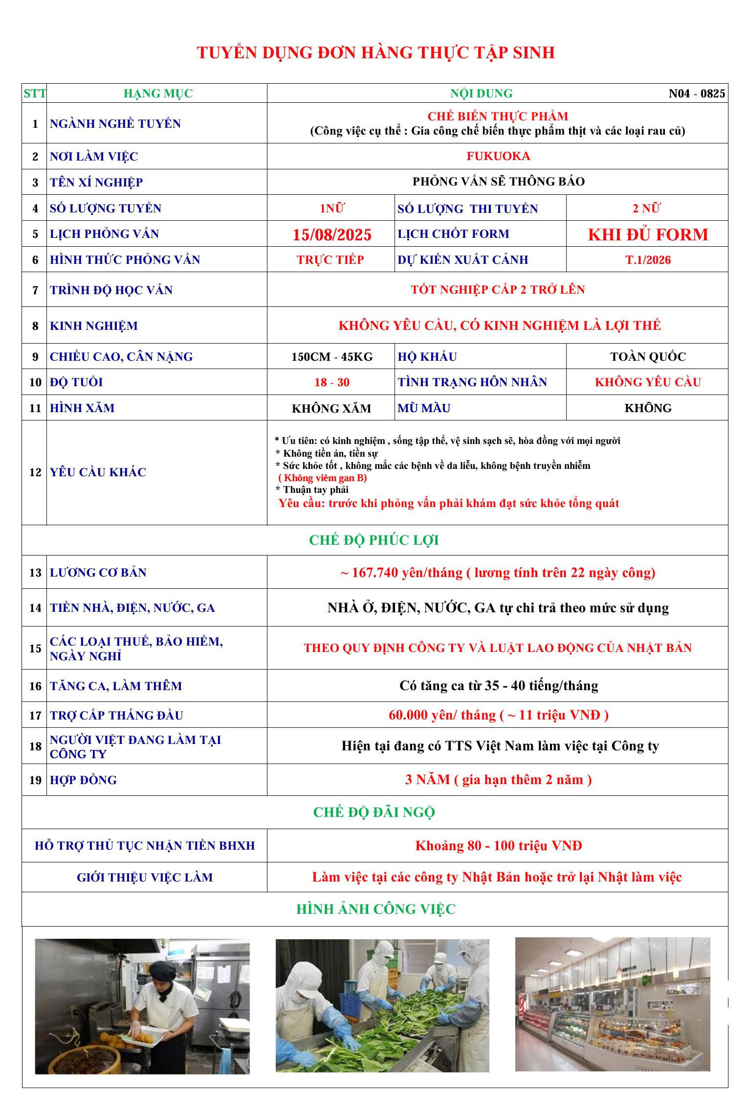 | FUKUSHIMA | LÀM VIỆC ĐÓNG GÓI XÀ LÁCH VÀ GIÁ ĐỖ TẠI NHẬT BẢN