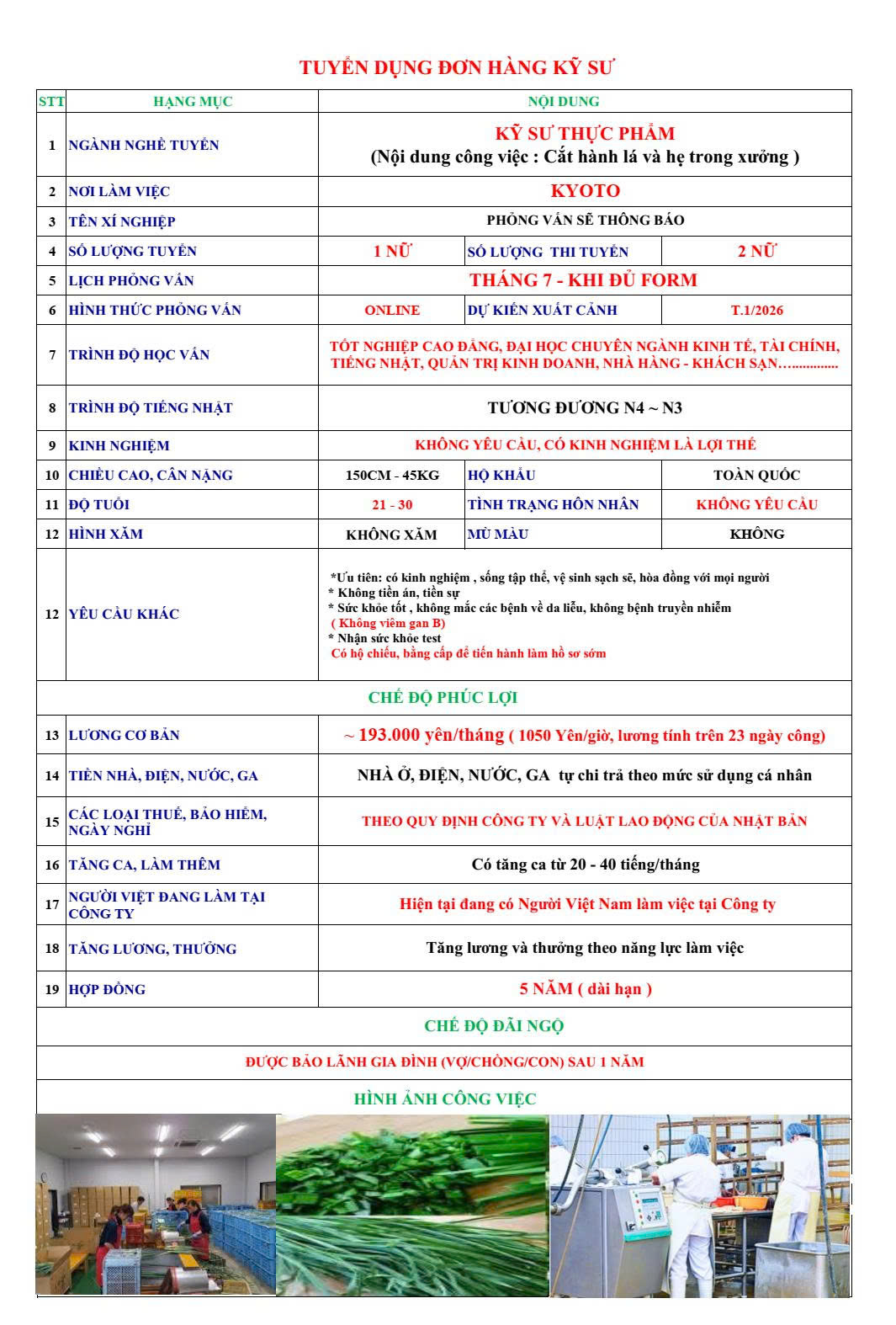 TUYỂN KỸ SƯ THỰC PHẨM TẠI KANAGAWA, LƯƠNG THƯỞNG HẤP DẪN