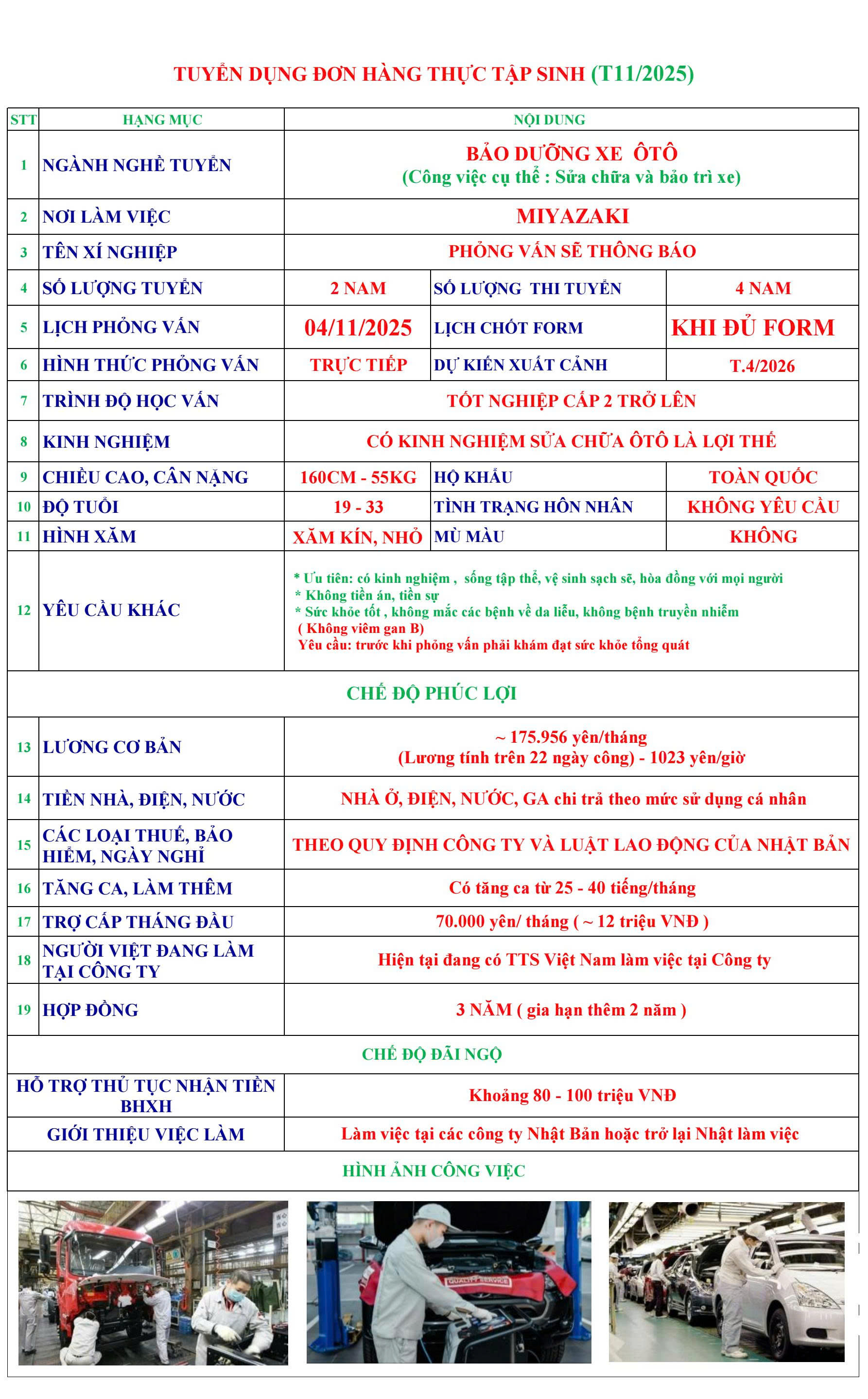 | MIYAZAKI | BẢO DƯỠNG XE Ô TÔ VỚI MỨC THU NHẬP HẤP DẪN