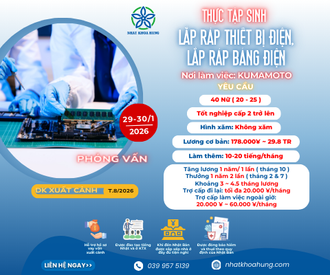 Tuyển 40 nữ, lắp ráp thiết bị điện, lắp ráp bảng điện, tăng lương, thưởng hấp dẫn, trợ cấp đi lại, làm ngoài giờ. Đăng ký ngay nhé!