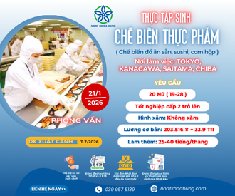 Tuyển 20 nữ Chế Biến Thực Phẩm với mức lương hấp dẫn, trợ cấp đầy đủ theo quy định. Đăng ký ngay nhé!