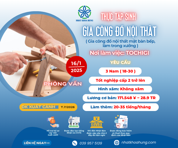 | TOCHIGI | GIA CÔNG ĐỒ NỘI THẤT CẦN TUYỂN 3 NAM LÀM VIỆC TẠI NHẬT BẢN