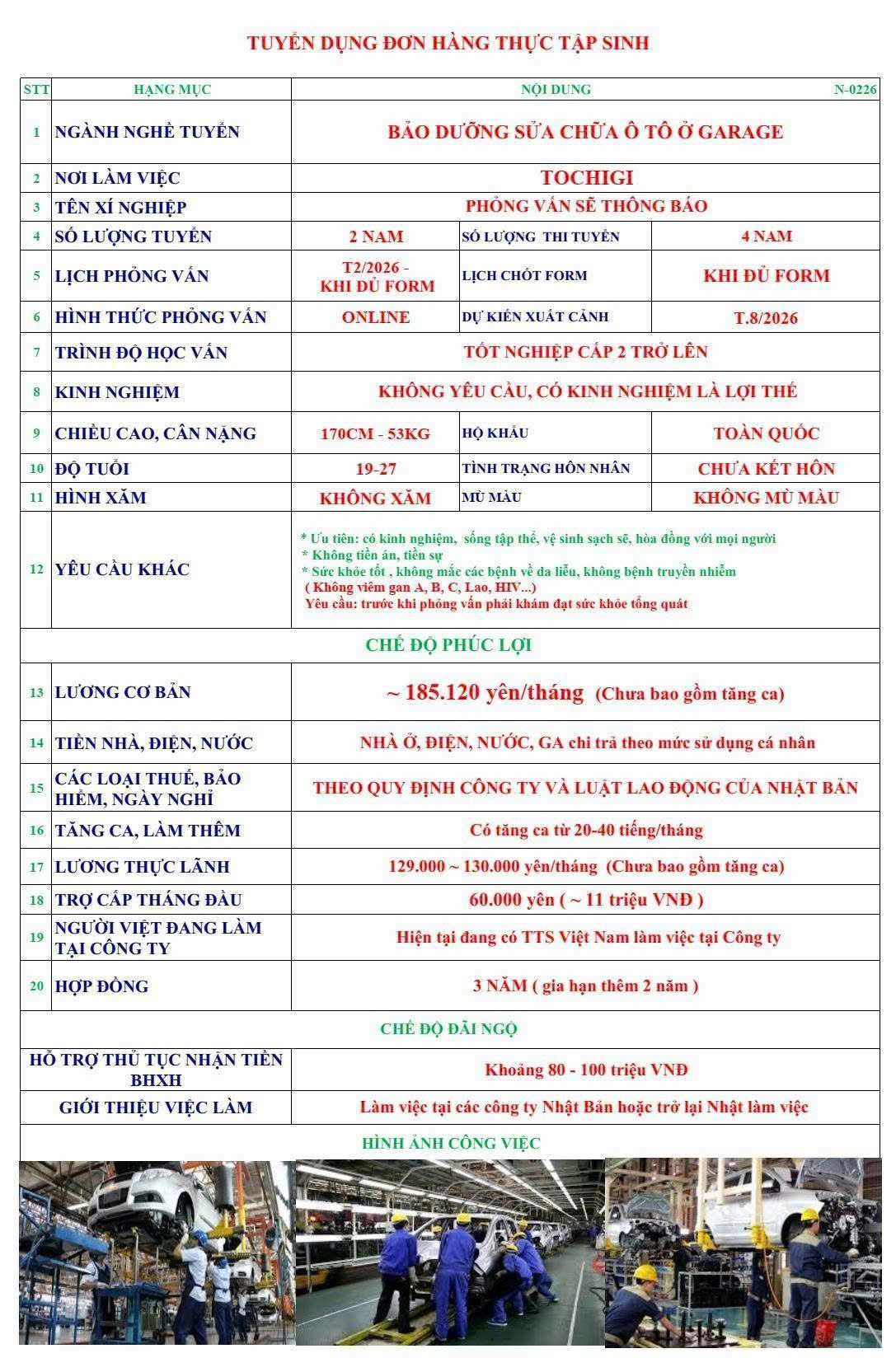 | TOCHIGI | BẢO DƯỠNG SỬA CHỮA Ô TÔ Ở GARAGE