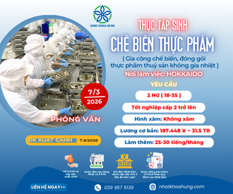 | HOKKAIDO | TUYỂN 2 NỮ CHẾ BIẾN THỰC PHẨM LÀM VIỆC TẠI NHẬT BẢN