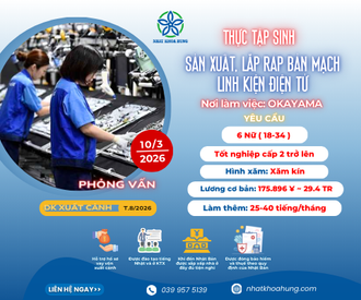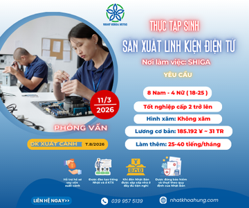Tuyển 8 nam và 4 nữ làm sản xuất linh kiện điện tử làm việc tại Nhật Bản. Đăng ký ngay nhé!