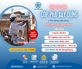 | NAGANO | TUYỂN GẤP 6 NAM THI CÔNG CỐP PHA LÀM VIỆC TẠI NHẬT BẢN