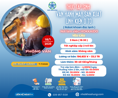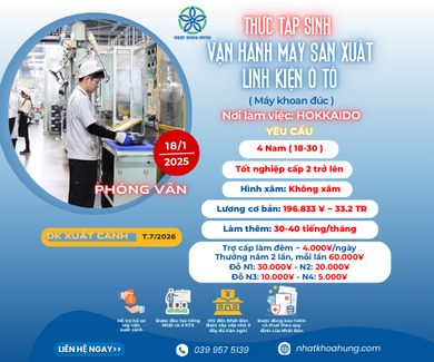 | HOKKAIDO | TUYỂN 3 NAM VẬN HÀNH MÁY SẢN XUẤT LINH KIỆN Ô TÔ