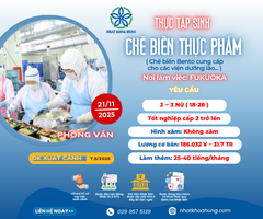 | FUKUOKA | TUYỂN 3 NỮ CHẾ BIẾN THỰC PHẨM LÀM VIỆC MÔI TRƯỜNG CHUYÊN NGHIỆP