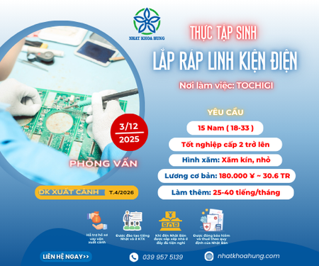 | TOCHIGI | TUYỂN GẤP 15 NAM LẮP RÁP LINH KIỆN ĐIỆN