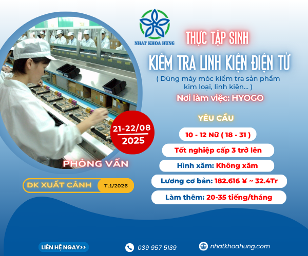 [Hyogo] TUYỂN GẤP 10-12 NỮ KIỂM TRA LINH KIỆN ĐIỆN TỬ