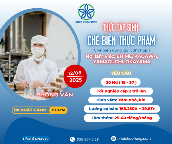 [Ehime, Kagawa, Yamaguchi, Okayama] CHẾ BIẾN THỰC PHẨM ĐÓNG GÓI CƠM HỘP