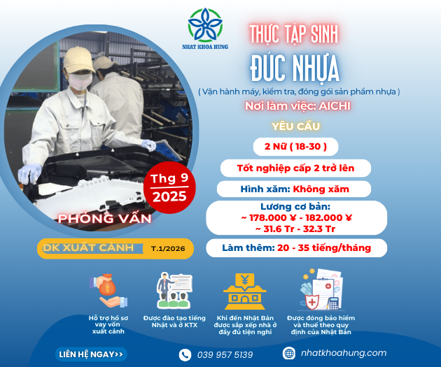TUYỂN 2 NỮ ĐÚC NHỰA LÀM VIỆC TẠI NHẬT BẢN