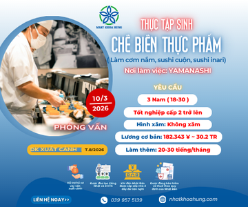 Tuyển đơn nam làm chế biến thực phẩm cơm nắm, sushi cuộn, sushi inari. Đăng ký ngay nhé!