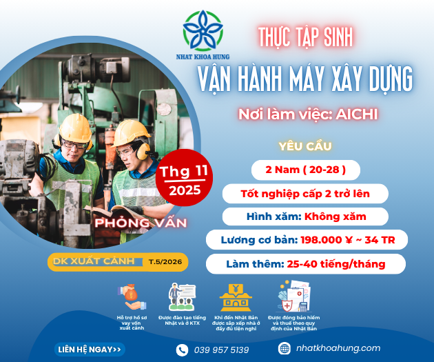 Tuyển 2 nam vận hành máy xây dựng, tăng ca đều, làm việc lương cao, môi trường chuyên nghiệp. Đăng ký ngay nhé!